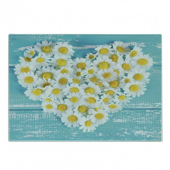 Hero image 0 of Yellow and Blue Cutting Board, Heart Shaped Daisy Flowers Romantic Lovers Chamomile Blossoms Print, Decorative Tempered Glass Cutting and Serving Board, Small Size, Sky Blue White, by Ambesonne, 0 of 1