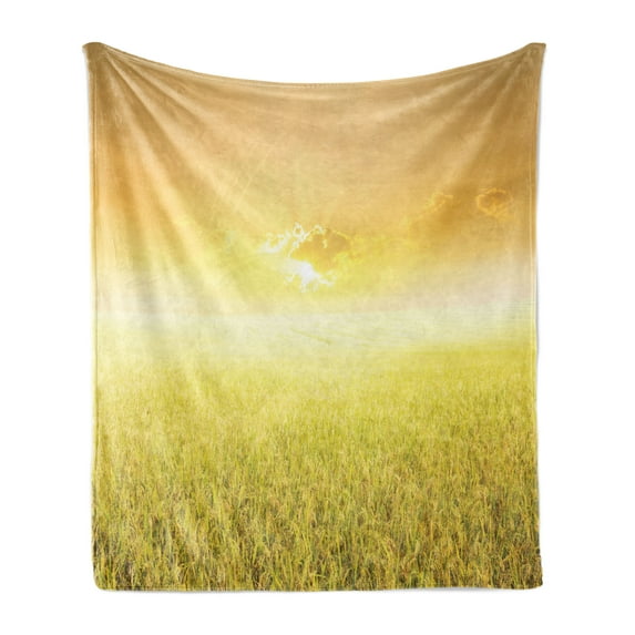 Hero image 0 of Yellow Soft Flannel Fleece Throw Blanket, Rice Field Farm and Sunset Countryside Agriculture Sun Rays Evening Cloudscape, Cozy Plush for Indoor and Outdoor Use, 60" x 80", Yellow Beige, by Ambesonne, 0 of 5