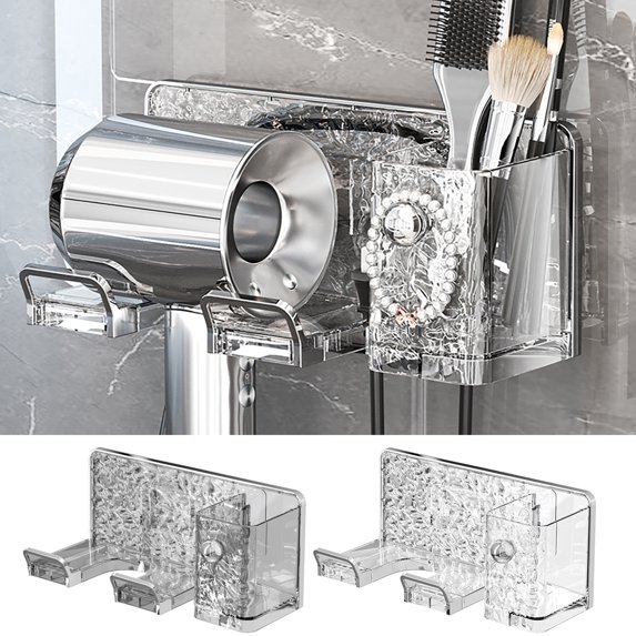 Upgrade your bathroom with this chic and functional hair dryer holder that combines practicality with aesthetic appeal. Say goodbye to clutter and hello to a more organized and stylish space with our wall-mounted storage rack!
