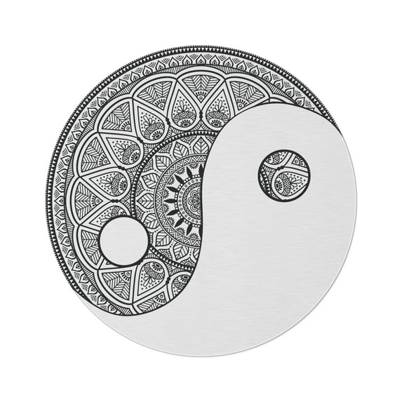 Yinyang (yin-yang) is one of the dominant concepts shared by different schools throughout the history of Chinese philosophy. Yin represents darkness and yang represents light. One cannot exist without the other. Find balance while on your healing journey with this yin-yang mandala round rug. 100% polyester chenille rug featuring a coated backing and hemmed edges for durability.