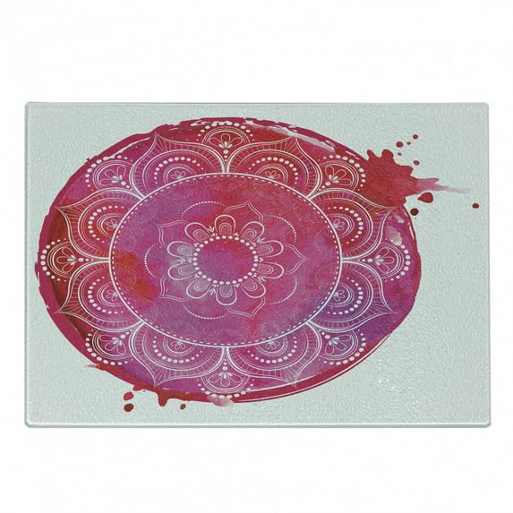 Yoga Cutting Board, Pink Watercolor Round with an Mandala Art Motif Paint Drop Like Illustration, Decorative Tempered Glass Cutting and Serving Board, Small Size, Magenta White Pink, by AmbesonneYoga Cutting Board Pink Watercolor Round Mandala Art Motif Paint Drop Like Illustration Decorative Tempered Glass Serving Small Size Magenta White PiYoga Cutting Board Pink Watercolor Round Mandala Art Motif Paint Drop Like Illustration Decorative Tempered Glass Serving Large Size Magenta White Pi