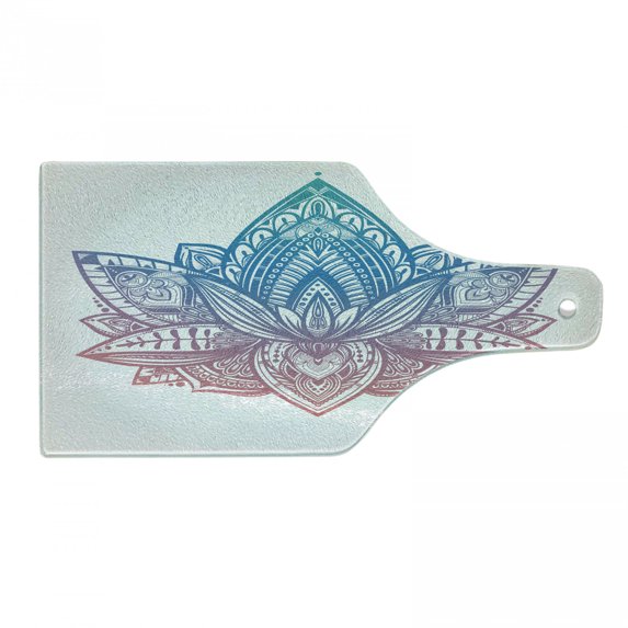 Hero image 0 of Yoga Cutting Board, Tribal Patterned Boho Ornamental Lotus Flower Art, Decorative Tempered Glass Cutting and Serving Board, Wine Bottle Shape, Dried Rose White, by Ambesonne, 0 of 1
