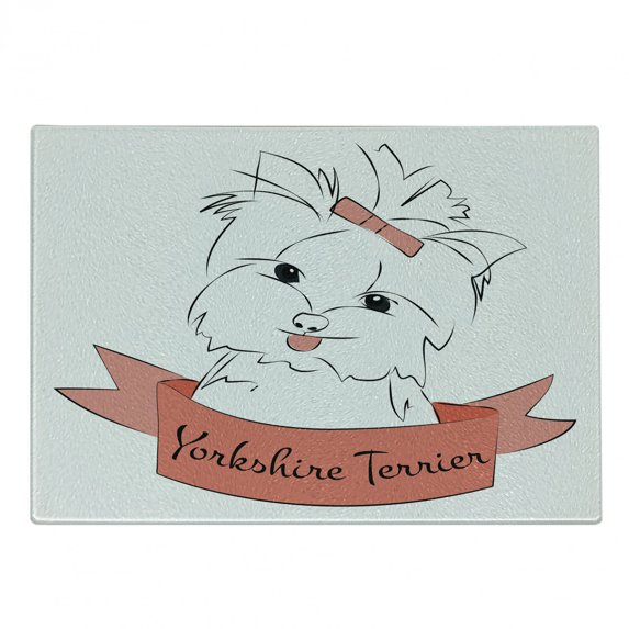 Yorkie Cutting Board, Puppy with Hair Buckle Yorkie Terrier Animal Ribbon Cartoon Character Print, Decorative Tempered Glass Cutting and Serving Board, Small Size, Pink White, by AmbesonneYorkie Cutting Board Puppy Hair Buckle Terrier Animal Ribbon Cartoon Character Print Decorative Tempered Glass Serving Small Size Pink White AmbesonnYorkie Cutting Board Puppy Hair Buckle Yorkie Terrier Animal Ribbon Cartoon Character Print Decorative Tempered Glass Cutting Serving Board Wine BottYorkie Cutting Board Puppy Hair Buckle Terrier Animal Ribbon Cartoon Character Print Decorative Tempered Glass Serving Large Size Pink White Ambesonn