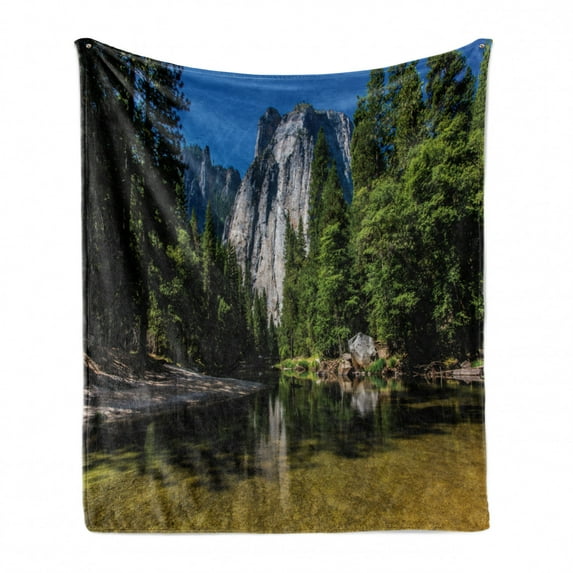 Yosemite Soft Flannel Fleece Blanket, Large Granite Cliff Surrounded by Trees River Under Clear Sky Wild Beauty Scenery, Cozy Plush for Indoor and Outdoor Use, 50" x 70", Green Blue, by AmbesonneYosemite Soft Flannel Fleece Blanket Large Granite Cliff Surrounded Trees River Under Clear Sky Wild Beauty Scenery Cozy Plush Indoor Outdoor Use 50Yosemite Soft Flannel Fleece Blanket Large Granite Cliff Surrounded Trees River Clear Sky Wild Beauty Scenery Cozy Plush Indoor Outdoor Use 50 x 60 GYosemite Soft Flannel Fleece Blanket Large Granite Cliff Surrounded Trees River Clear Sky Wild Beauty Scenery Cozy Plush Indoor Outdoor Use 70 x 90 GYosemite Soft Flannel Fleece Blanket Large Granite Cliff Surrounded Trees River Under Clear Sky Wild Beauty Scenery Cozy Plush Indoor Outdoor Use 60