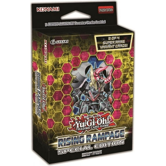 A new wave crashes over the Dueling world!Rising Rampage Special Edition includes 3 booster packs of Rising Rampage, along with 2 (of 4) new Super Rare cards, including Marincess cards from the upcoming booster set, or a Salamangreat monster exclusive to this release!Marincess is a major new WATER monster theme in Rising Rampage, and they’re getting even more cards in October’s core booster set. This Special Edition makes the high tide come in early, by releasing Marincess cards from the upcoming booster set over a month early – and they’ll be tournament-legal on release! If you’d rather play with FIRE than WATER, Rising Rampage Special Edition also includes a new Salamangreat monster for some howling good fun!Here's a preview on what else you can expect in the 3Rising Rampage packs in each Special Edition:•Master the Tenyi arts! The practitioners of Tenyi martial arts discard their material possessions and mortal abilities and instead channel the unbridled power of nature by communing with the planet itself.•Marincess rule the seas! Blue Maiden's Ignis-powered Cyberse strategy fromYu-Gi-Oh! VRAINSmakes land inRising Rampage. Just drawing this theme's basic monster, Marincess Sea Horse, is enough to let you Summon the Link-3 Marincess Marbled RockAND addMarincess Sea Horse back to your hand!•The Witchcrafters fromThe Infinity Chaserscomplete their masterpiece! Take delivery ofWitchcrafter Golem Aruruand you can upgrade any Spellcaster-based Deck with a monster that hides in your hand until your opponent targets your Spellcaster with an attack, card, or effect, and then makes them regret it!•Fortune Lady Every is a Synchro Monster you can put in any Spellcaster-based Deck! She grows stronger during each of your Standby Phases, and each time she does, one of your opponent's monsters ceases to exist! She can't be defeated by normal means, springing out of your Graveyard every time your opponent ends their turn.•A unique new weapon for your Extra Deck!Apollousa, Bow of the Goddessis a Link-4 monster that nocks an arrow for every monster used to Link Summon it. Each one is worth 800 ATK, for a maximum of 3200 ATK, and you can have Apollousa lose 800 ATK to negate the activation of any opposing monster effect.Each Rising Rampage Special Edition contains: 3 Rising Rampage booster packs, plus 2 (of 4) new cards.