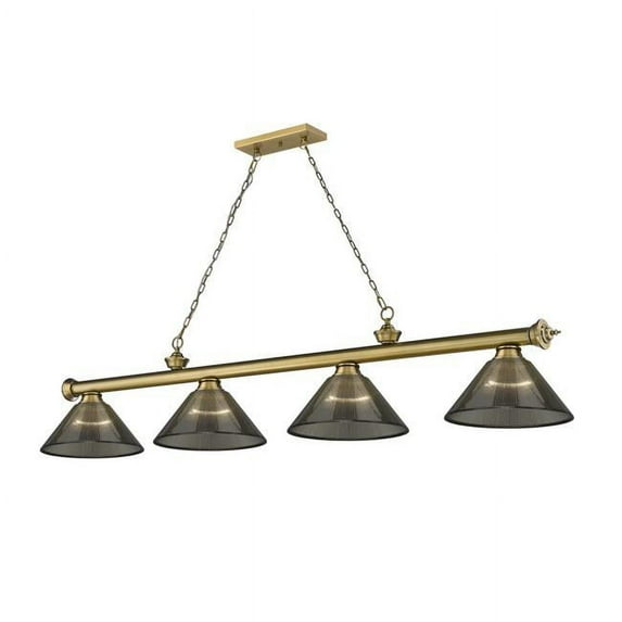 Z-Lite-2306-4RB-ARS-Collection: Cordon, Material: Steel, Finish Color: Rubbed Brass, Width: 14", Height: 14.5", Length: 81.25", Chain Length: 72", Lamping Type: Incandescent, Number Of Bulbs: 4, Wattage: 60 Watts, Dimmable: Yes, Moisture Rating: Dry Rated, Desc: The alluring gleam of the finish and the delicate beauty of its glass shades makes this traditional, four-light metal billiard light an attractive addition to any home. Perfect for kitchens, game rooms, and dining rooms, this effortlessly stylish fixture breathes new life into everyday home decor. Room Recommendation: Game Room/Dining Room/Kitchen/Kitchenette / Cord Length: 110.00 / Chain Length: 72.00 / Dimmable: Yes / Shade Included: Yes. ,-Cordon - 4 Light Billiard In Traditional and Classical Style-14.5 Inches Tall and 14 Inches Wide