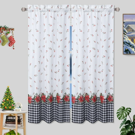 - FEATURES- Our kitchen curtains have perfect decoration for the Christmas season. The attractive flower and plaid design kitchen curtain set will enhance your home with the richest Christmas decor