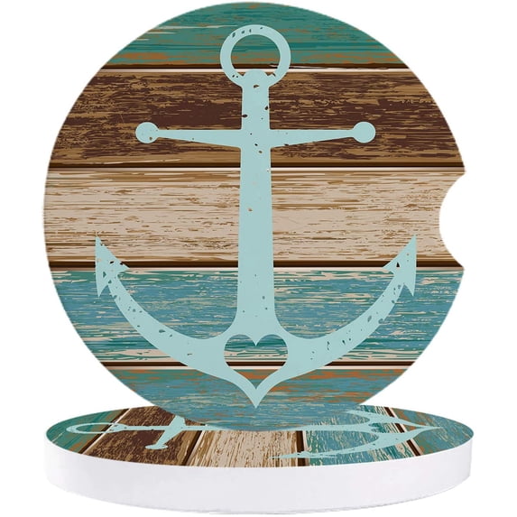 Hero image 0 of ZHANZZK Summer Anchor Aqua Green Wooden Grain Set of 6 Car Coaster for Drinks, Absorbent Ceramic Stone Coasters Cup Mat with Cork Base for Home Kitchen Room Coffee Table Bar Decor, 0 of 5