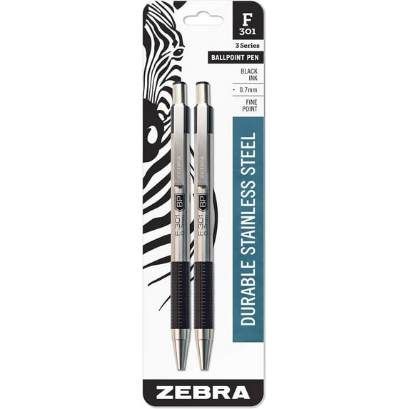 Options from$436– $1649Zebra Pen F-301 Ballpoint Stainless Steel Retractable Ink Pens, 0.7mm, Black Ink, 2 Count