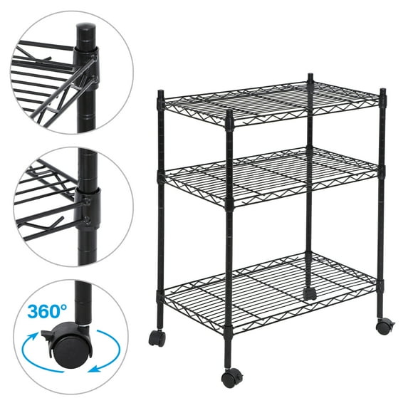 2354.6 out of 5 Stars. 235 reviewsShipping, arrives in 3+ daysWire Shelving 32" H x 23W x 13D Storage Shelf with Wheels Adjustable 3 Tier Metal Shelves Unit for Small Places Kitchen Storage Rack Shelf Organizer, 450Lbs Capacity, Black $22.27 Was $37.99