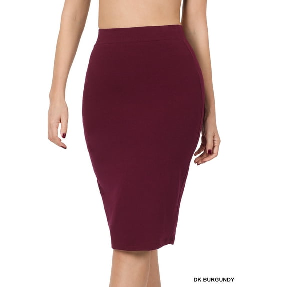 Zenana Women & Plus Premium Cotton Basic Bodycon Knee Length Midi Office Pencil Skirt
