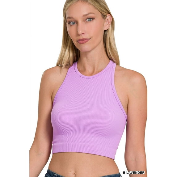 Hero image 0 of Zenana Women's Ribbed Seamless High Neck Nylon Cropped Racerback Tank Top, 0 of 2
