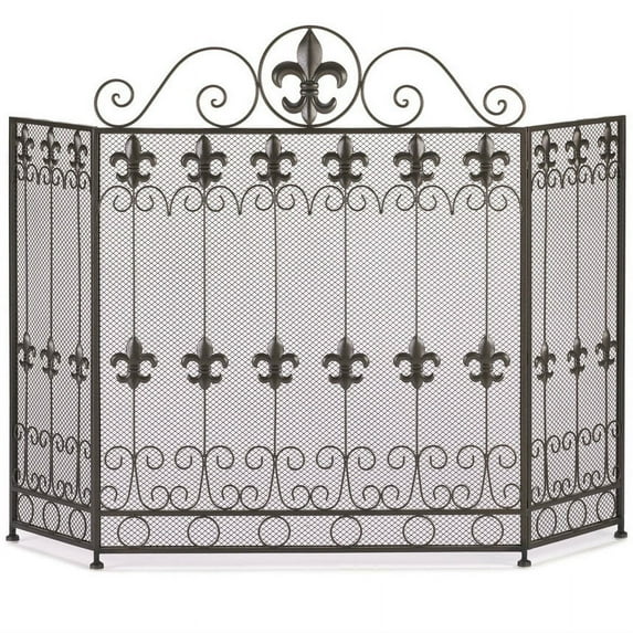 A touch of French form will add a dash of style to your fireplace. This beautiful iron screen features a gorgeous pattern of fleur de lis metal cutouts accented by scrolling designs. The top features a large fleur de lis that accentuates its continental charm.