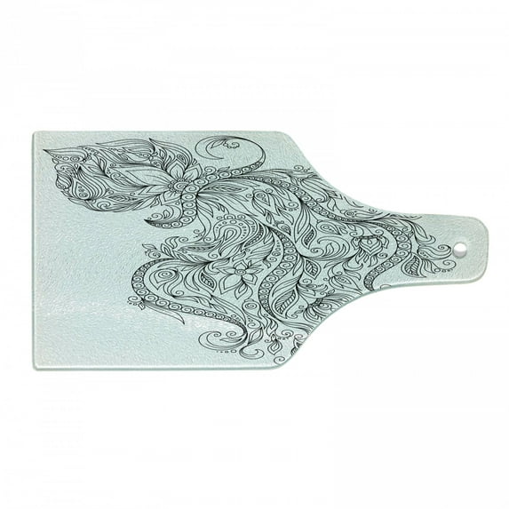 Hero image 0 of Zodiac Cutting Board, Swirling Curved Flowers and Bouquet with Zodiac Sign Aquarius Month Design, Decorative Tempered Glass Cutting and Serving Board, Wine Bottle Shape, Black White, by Ambesonne, 0 of 1