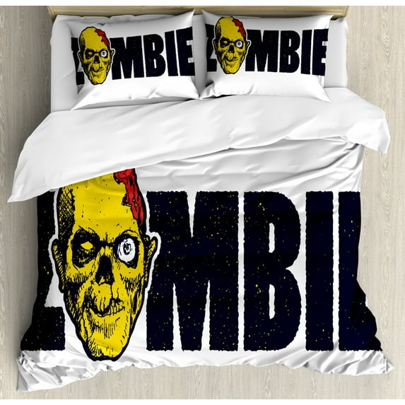Zombie Duvet Cover Set, Dead Human Face Caricature Typography Style Monster Theme Illustration, Decorative 3 Piece Bedding Set with 2 Pillow Shams, Queen Size, Dark Blue Yellow, by AmbesonneZombie Duvet Cover Set Dead Human Face Caricature Typography Style Monster Theme Illustration Decorative 3 Piece Bedding Set 2 Pillow Shams Queen SizZombie Duvet Cover Set Dead Human Face Caricature Typography Style Monster Theme Illustration Decorative 2 Piece Bedding Set 1 Pillow Shams Twin Size