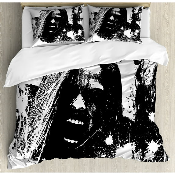 Zombie Duvet Cover Set King Size, Artistic Horror Sketch of a Crazy Man in Pain Screaming Portrait Evil Style Display, Decorative 3 Piece Bedding Set with 2 Pillow Shams, Black White, by AmbesonneZombie Duvet Cover Set King Size Artistic Horror Sketch Crazy Man Pain Screaming Portrait Evil Style Display Decorative 3 Piece Bedding Set 2 PillowZombie Duvet Cover Set Queen Size Artistic Horror Sketch Crazy Man Pain Screaming Portrait Evil Style Display Decorative 3 Piece Bedding Set 2 PillowZombie Duvet Cover Set Twin Size Artistic Horror Sketch Crazy Man Pain Screaming Portrait Evil Style Display Decorative 2 Piece Bedding 1 Pillow Sham