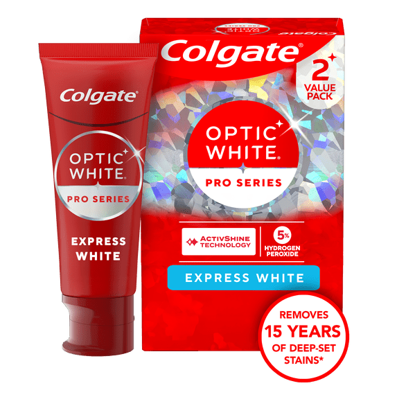 Colgate Optic White Pro Series Express White Toothpaste with 5% Hydrogen Peroxide, 2 Pack, 3.0 oz