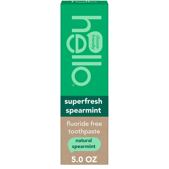 - Includes one (1) 5.0 oz tube of hello Superfresh Fluoride Free Toothpaste for Bad Breath, Natural Spearmint Toothpaste