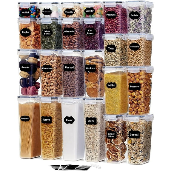 Lifewit 24-Piece Airtight Food Storage Containers, Cereal Container, Kitchen Pantry Storage for Rice, Candy, SnackLifewit 24pcs Airtight Food Storage Containers Set with Labels Marker for Kitchen Pantry Sugar Flour Dry Food BPA FreeLifewit 13pcs Airtight Food Storage Containers Set with Labels Marker for Kitchen Pantry BPA Free