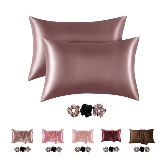 bellolin Satin Pillowcase for Hair and Skin - Chiku Queen Pillowcase 20x30 Inches - Set of 2, Standard Size Pillow Case with Envelope Closure & 3 Silk Scrunchies ( Chiku, Set of 2 )bellolin Satin Pillowcase Hair Skin Chiku Queen Pillowcase 20x30 Inches Set 2 Standard Size Pillow Case Envelope Closure 3 Silk Scrunchies Chiku Set