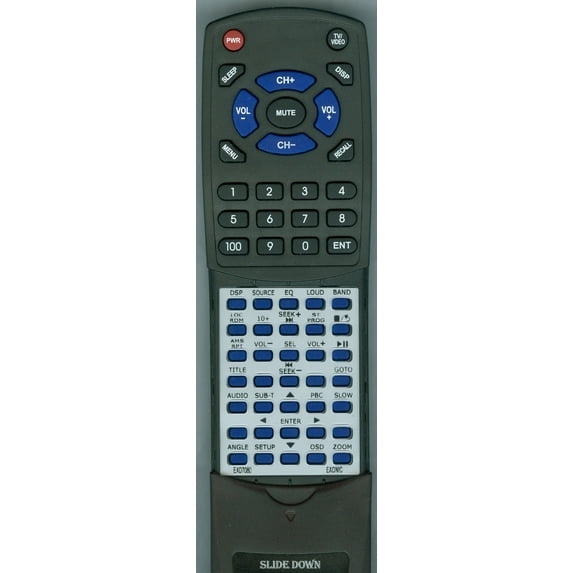 This Remote Control is custom built by Redi-Remote to replace the EXONIC Remote Control, Part number EXD7080. This remote will only operate the model numbers listed here. This remote is not a universal remote, it cannot be programmed to operate any other model or component. All remotes we sell are backed with a One-year money back guarantee! **Redi-Remotes are guaranteed to work with the unit they are designed for. **Redi-Remotes cannot be programmed to control any auxillary devices. **Redi-Remotes designed for projectors are not equipped with Laser pointers. **Actual size of Redi-Remotes is 7 1/2in X 2 1/4in X 7/8in. |