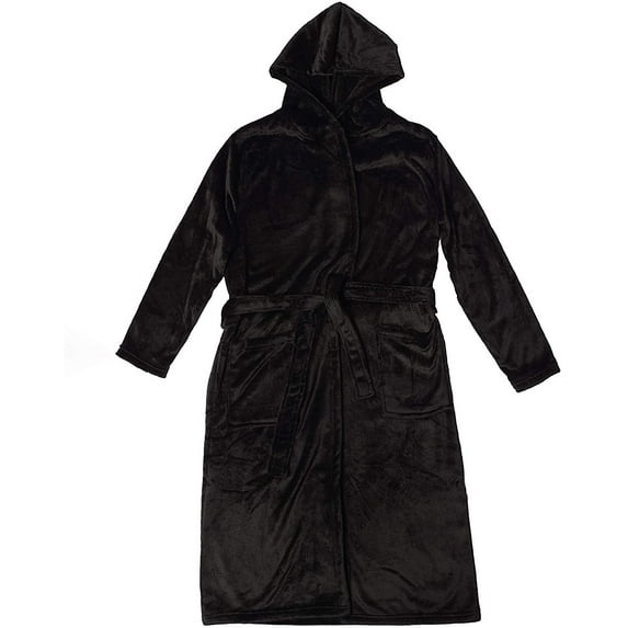 $2420current price $24.20Fanxing Christmas Robes for Women Plush Fleece Hooded Bathrobe, Plus Size Thick Warm Long Robe Sleepwear with Pocket Black L