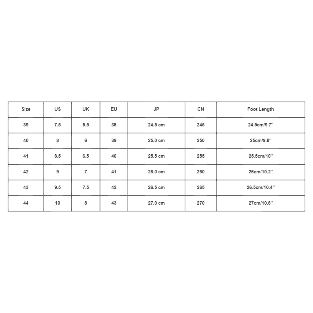 Size:40 US:8 UK:6 EU:39 JP:25.0 cm CN:250 Foot Length:25cm/9.8''