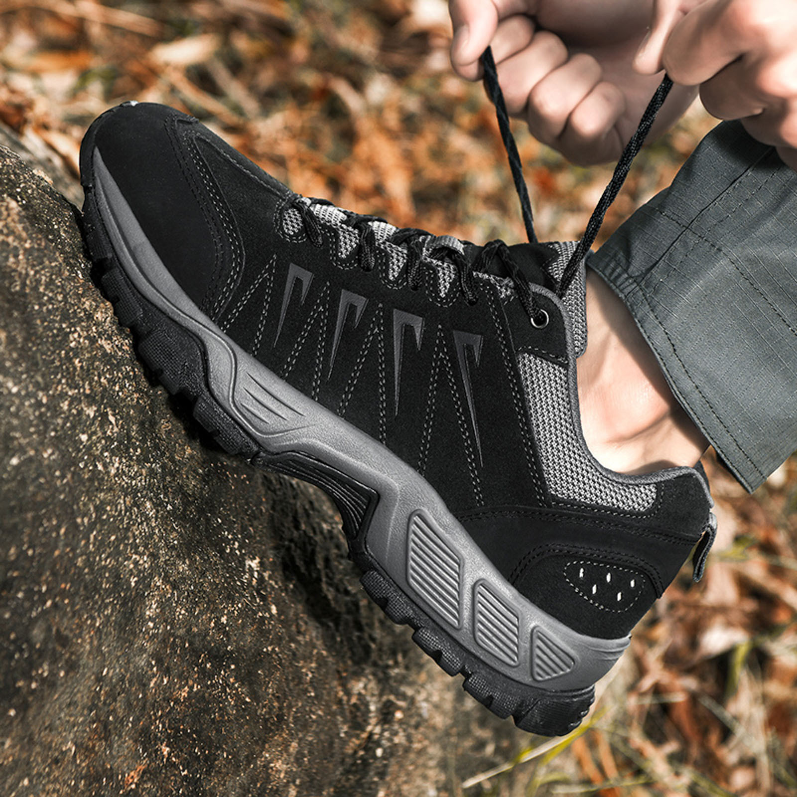 - 【Waterproof Leather Upper】Our hiking shoes for men are made of genuine leather upper and advanced waterproof design, which can be effectively waterproof and comfortable and breathable.