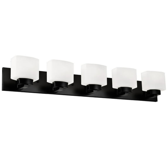 Design House Dove Creek 5-Light Dimmable Vanity Light with Frosted Glass Shades, Matte Black