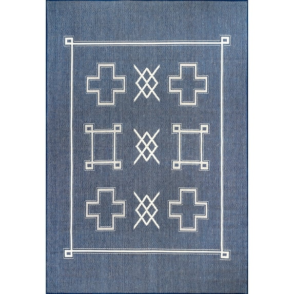 nuLOOM Hillary Geometric Tribal Indoor/Outdoor Area Rug, 6' 7" x 9', Navy