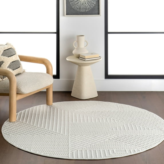 nuLOOM Makena Modern Geometric High-Low Area Rug, 6', Round, Makena Off-white