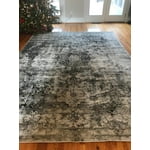 This rug is even more beautiful in person ! The black parts aren't stark black , but subtle and perfect . It arrived very quickly and was packaged very well . It is very comfortable to walk on and easy to vacuum ! [This review was collected as part of a promotion.]