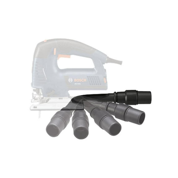The Bosch Articulating Dust Extraction Kit for JS572E and JS572EB Jig Saws includes three products that convert vacuum cleaners into a powerful dust management tools. These attachments maximize your ability to efficiently collect dust and debris where it's produced before it's released into the environment. Designed specifically for Bosch JS572E and JS572EB jig saws, the dust hood, articulated suction nozzle and vacuum hose adapter of the Bosch articulating dust extraction kit are compatible with most vacuum cleaners. The universal vacuum adapter links Bosch power tools and adapters to vacuum hoses with 1-1/4 or 1-1/2-inch hoses. The Bosch jig saw dust extraction kit's articulating suction nozzle increases the ease of working with a vacuum hose attached to your jig saw. The dust hood and suction nozzle don't require adapters for use with Bosch vacuum cleaners.
