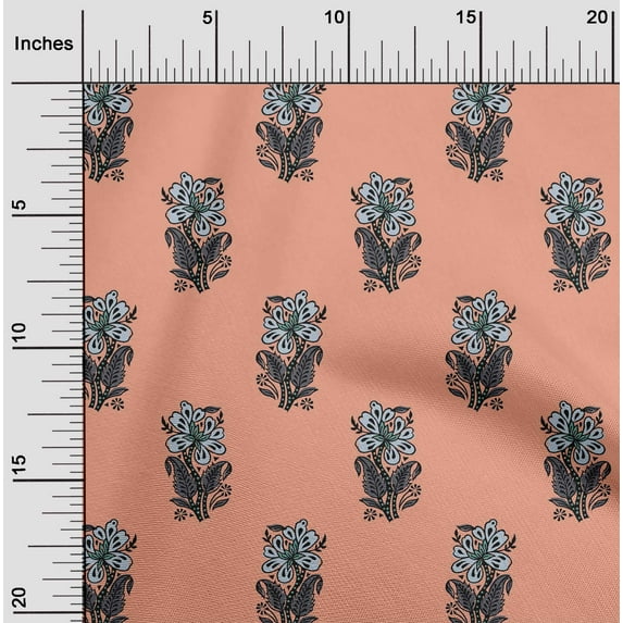 oneOone Georgette Viscose Fabric Leaves & Floral Block Print Fabric By The Yard 42 Inch Wide