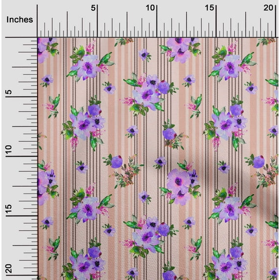 Hero image 0 of oneOone Viscose Jersey Fabric Stripe|Watercolor Leaves & Peony Floral Decor Fabric Printed BTY 60 Inch Wide, 0 of 5