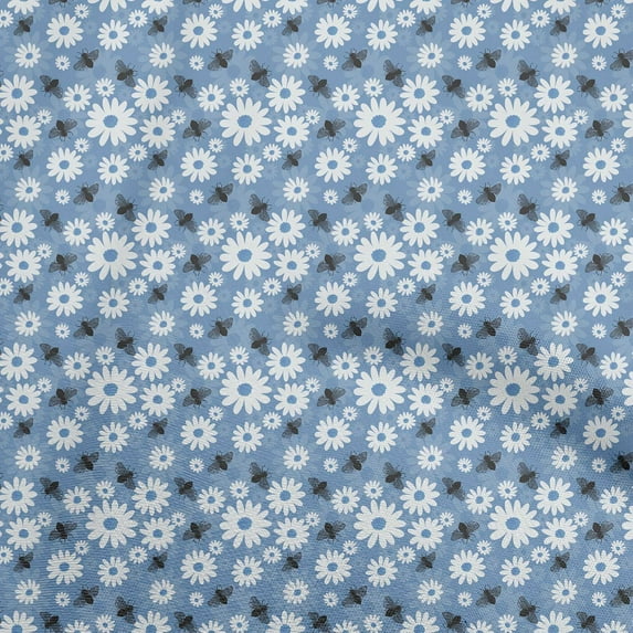 oneOone Viscose Jersey Medium Blue Fabric Honey Bees Quilting Supplies Print Sewing Fabric By The Yard 60 Inch Wide