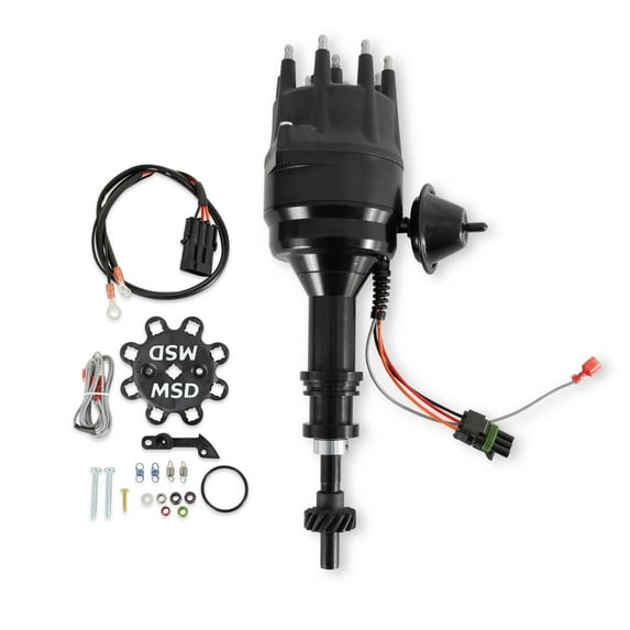 The Pro-Billet Ready-to-Run distributor is the perfect upgrade for outdated points distributors or bulky HEIs. Simply install the distributor in the engine, connect three wires to the coil and fire it up! A maintenance-free magnetic pick-up accurately reluctors the module. The increased output of the amplifier easily outperforms stock ignitions and will smooth out the engines idle, improve starting and provide a much higher rpm range. The Ready-to-Run features MSD's adjustable mechanical advance which allows you to custom tailor an ignition curve to match your engine's needs. There is also a vacuum advance canister to help improve economy. For positive street performance, the Ready-to-Run is the best choice. Includes a separate tach circuit that is ideal to reluctor a tach or an aftermarket EFI such as an Atomic EFI system.;