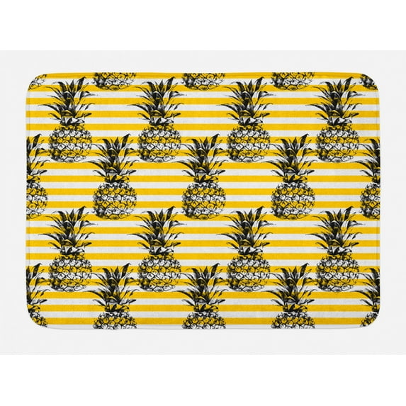 Hero image 0 of Grunge Bath Mat, Retro Striped Background with Pineapple Figures Vintage Hippie Graphic, Non-Slip Plush Mat Bathroom Kitchen Laundry Room Decor, 29.5 X 17.5 Inches, Black and Earth Yellow, Ambesonne, 0 of 2