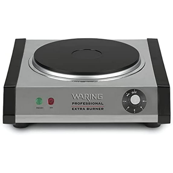 The Waring® WEB300 Commercial Cast-Iron Single Burner offers a heavy-duty, portable solution for your omelette, catering or buffet stations. A 1300 watt heating element heats up the 7" cast-iron burner plate quickly and evenly. Non-slip rubber feet keep the burner stable, while the adjustable thermostat with ON and READY indicator lights alert you when it reaches the desired temperature.
