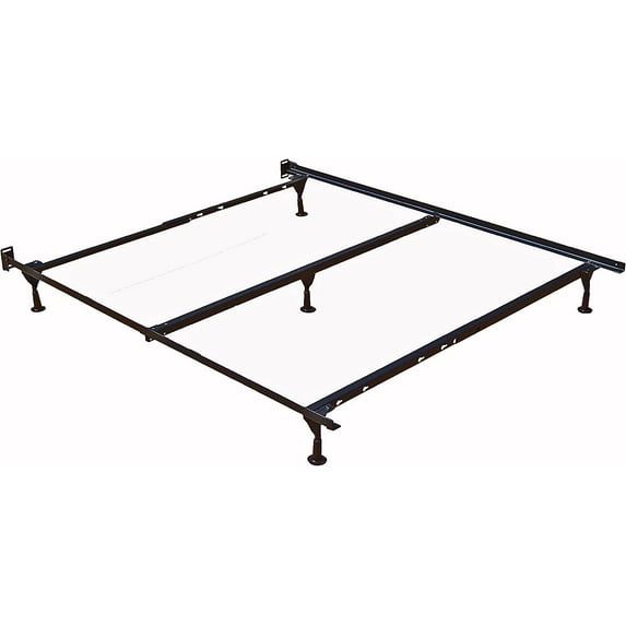 Made out of durable steel, this heavy-duty bed frame with glides is ideal for holding up any Queen box spring and mattress. The Insta-Lock design makes adjusting the frame easy, providing the box spring with a secure and stable fit. The side to side cross support and fifth leg provide extra support and strength to the frame.
