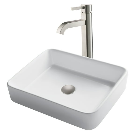KRAUS 19-inch Modern Rectangular White Porcelain Ceramic Bathroom Vessel Sink and Ramus Faucet Combo Set with Pop-Up Drain, Satin Nickel FinishKRAUS 19 inch Modern Rectangular White Porcelain Ceramic Bathroom Vessel Sink and Ramus Faucet Combo Set with Pop Up Drain Satin Nickel FinishKRAUS 19 inch Modern Rectangular White Porcelain Ceramic Bathroom Vessel Sink and Ramus Faucet Combo Set with Pop Up Drain Chrome FinishKRAUS 19 inch Modern Rectangular White Porcelain Ceramic Bathroom Vessel Sink and Ramus Faucet Combo Set with Pop Up Drain Oil Rubbed Bronze Finish