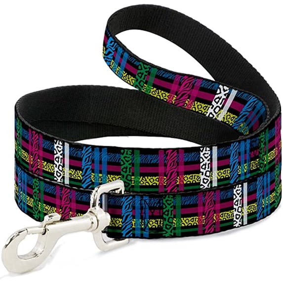 Buckle-Down Dog Leash Plaid Black Neon Animal Skins Available in Different Lengths and Widths for Small Medium Large Dogs and Cats