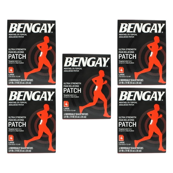 11 out of 5 Stars. 1 reviewsShipping, arrives in 3+ daysUltra Strength Bengay Pain Relief Patches, Large, 3.9 x 7.9 in, 4 Count $12.03 Was $14.49 $3.01/count