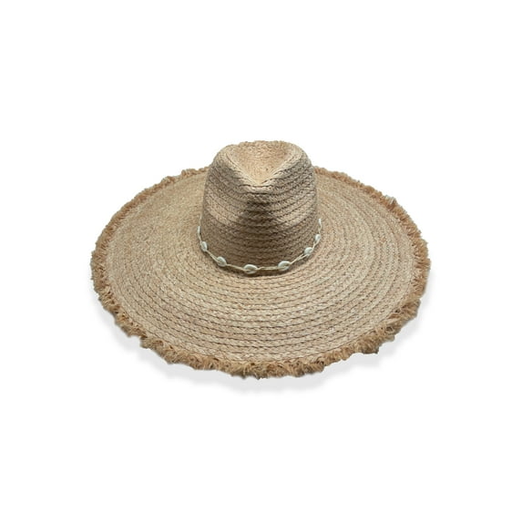 Time And Tru Women's Shell Fringe Straw Hat, OSFM, Natural