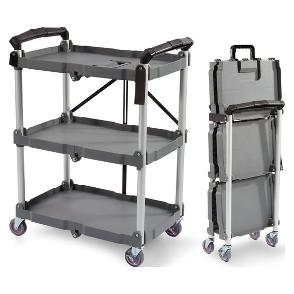 Hero image 0 of Elevon Service Cart Portable Utility 3 Tier Collapsible Shelving Unit, Gray, 0 of 7