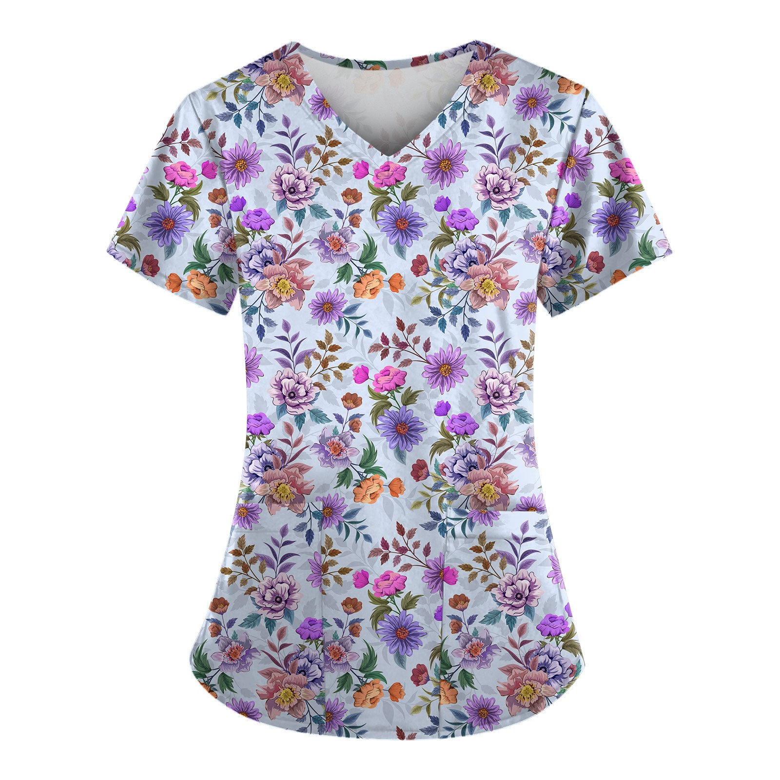 Hero image 0 of ADSSDQ Women's V-Neck Scrub Top,Floral Print Nursing Scrubs for Women,Summer Short Sleeve Workwear Nurse Uniforms Scrub Tops with Pockets Light Blue S, 0 of 3