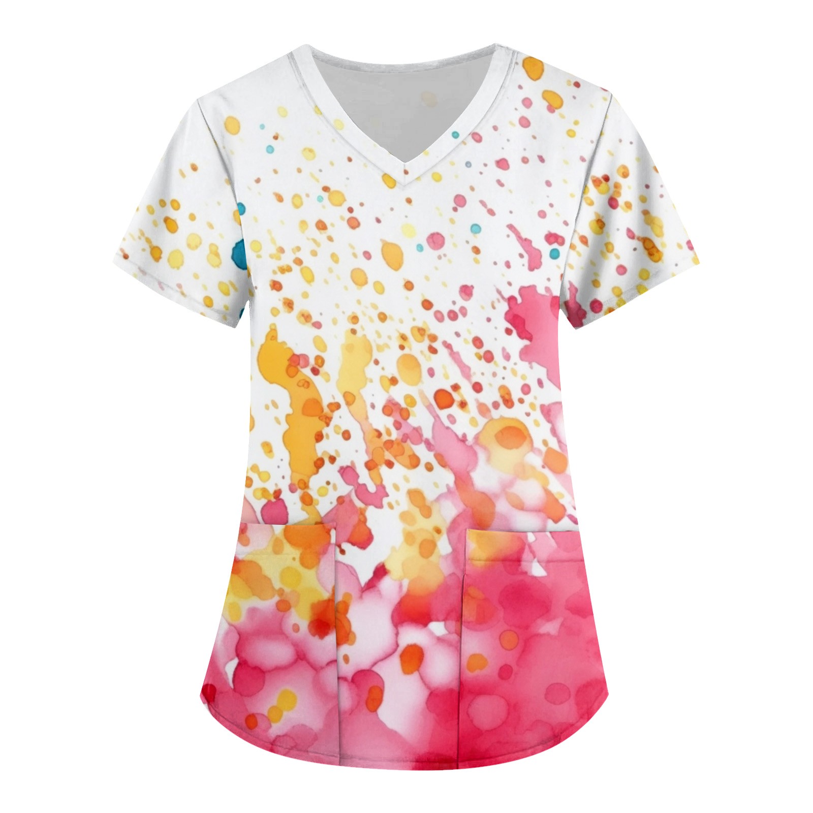 Hero image 0 of ADSSDQ Fun Scrub Tops Women Color Dots Printed Srcubs Tops Stretch Plus Size Short Sleeve V-Neck Working Nurse Uniform with Pockets Hot Pink L, 0 of 3