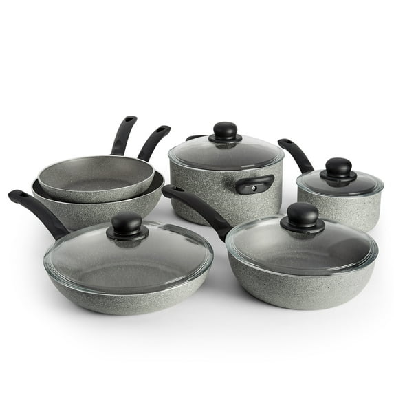 BALLARINI Parma by HENCKELS 10-Piece Forged Aluminum Nonstick Cookware Set, Pots and Pans Set, Granite, Made in Italy