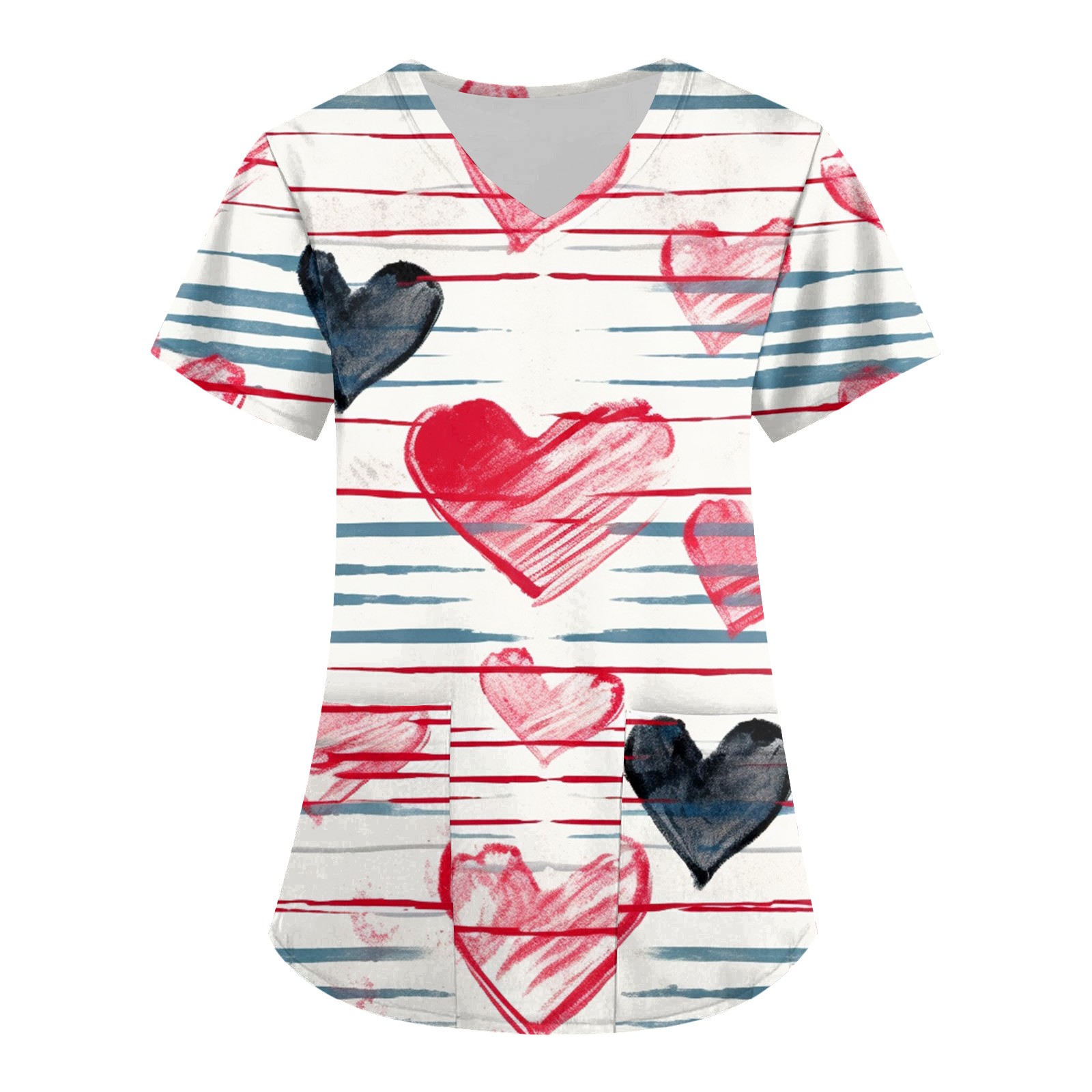 Hero image 0 of LHVUOA Womens Valentine's Day Scrub Tops Short Sleeve V Neck Print Shirts Nursing Working Uniform Cartoon Pattern Tops with Pockets, 0 of 3