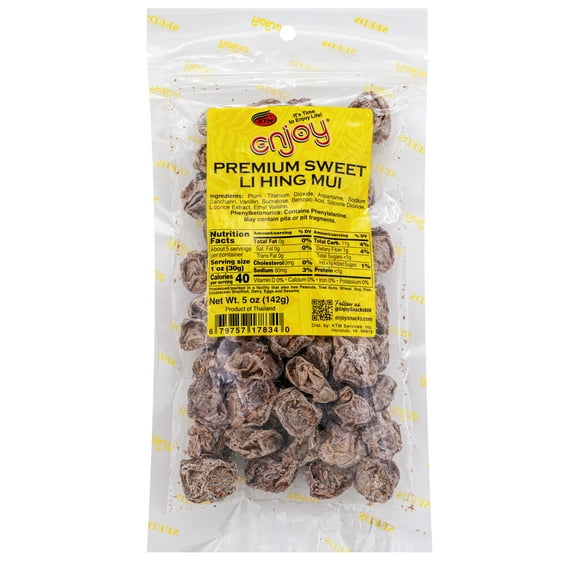 Enjoy Premium Sweet Li Hing Mui (5 oz), Resealable Bag, Dried Prunes, Contains Phenylalanine, Shelf-Stable
